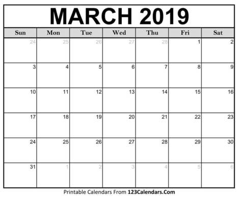 Blank Editable March 2019 Calendar Printable 2019 Calendar Template: Download Free March 2021 Calendar Template In Pdf And Jpeg.