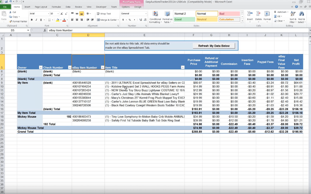 Ebay Sales Profit Tracking Break Even Calculator Microsoft Excel. Unfollow excel spreadsheet to stop getting updates on your ebay feed. Making sense of all the data can be maddening! Tracking income and expenses relating to ebay sales can be daunting. Unless you know excel format and equations you can easily mess it up. If you do know anything about excel you know. You'll receive email and feed alerts when new items arrive. See how we set up your ebay sales spreadsheet to track our sales and profit/loss. Mycostpro is an interactive spreadsheet for microsoft excel that helps you manage selling on ebay. Find many great new & used options and get the best deals for track ebay sales business accounting excel spreadsheet at the best online prices at ebay! Keeping track of listed products and completed sales can be a real hassle.