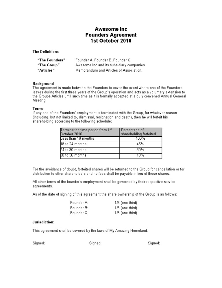 Founders Agreement Template Get Free Sample - This Will Save You From All Trouble Most People Get Into.