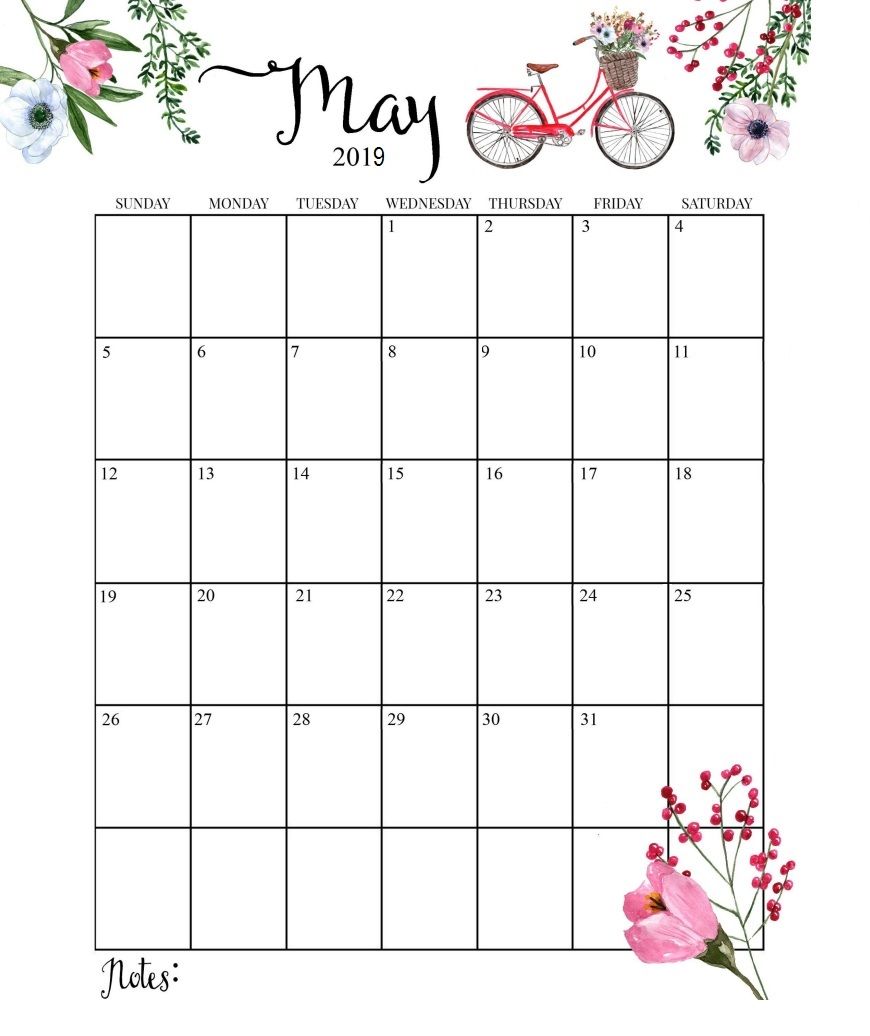 Editable May 2019 Calendar With Holidays And Notes Printable Monthly Calendar : Print The Calendar And Mark The Important Dates, Events, Holidays, Etc.