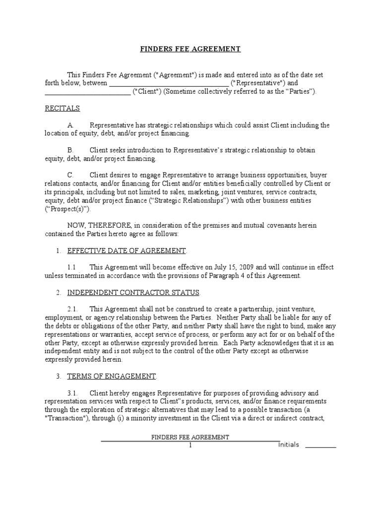 Finders Fee Agreement Sample Indemnity Confidentiality : We Must Consider A Fee Agreement For Approval Under The Fee Agreement Process Through All Levels Of The Administrative.